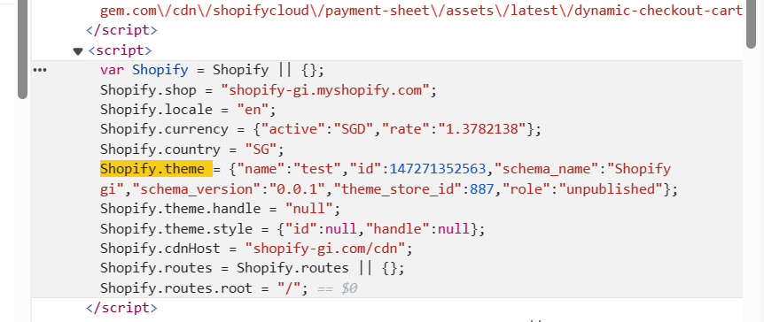 有时候呢,部分 Shopify 网站可能会通过在后台编辑主题名称,或者直接修改代码的方式,把主题名称给隐藏起来了,这种情况下该怎么办呢?我们可以在源代码中进行搜索,在 “shopify.theme” 包含的信息集合里查找 ID 相关特征,借助主题唯一的 theme_store_id 来判断对应的主题哦,不过要注意哦,这种方法只适用于查找来自 Shopify 官方主题商店中的主题呀。