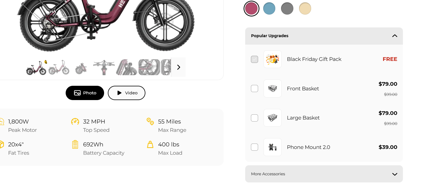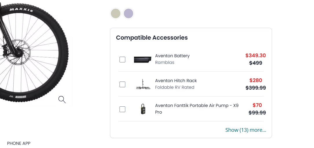 说到Ebike品类,我们会关注到一个点,那就是除了Ebike本身,配件的购买也是必不可少的,这个时候我们就可以在产品详情页添加配件捆绑购买的功能。