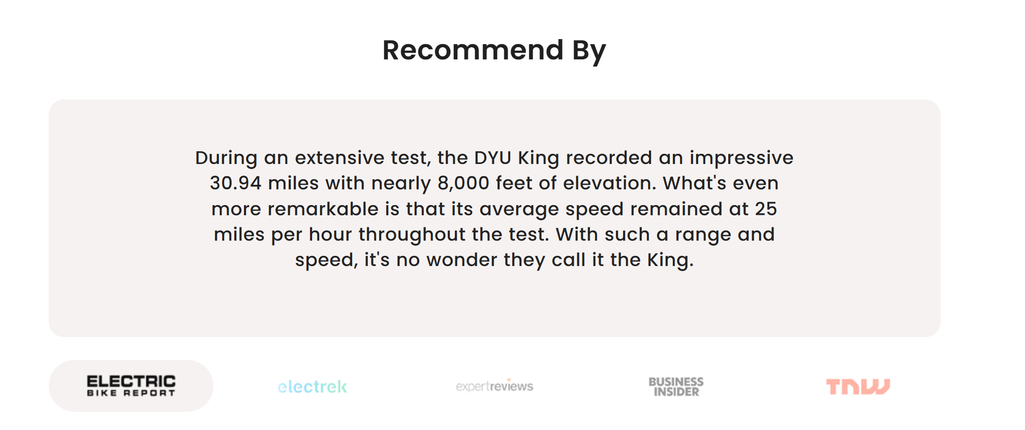 大量卖家进入Ebike这个品类,随之出现的是供应链和产能上的紧缺,市面上Ebike的外观和功能上已经出现同质化严重的局面,OEM公模化将成为主流,这时候一些自主研发功能、使用私模的卖家就成了赢家,如果获得红点设计奖、被某某新闻称赞这类型有公众可信度的资料放在网站上面,成为奖项/荣誉背书,可大大增加用户对品牌的信任度。